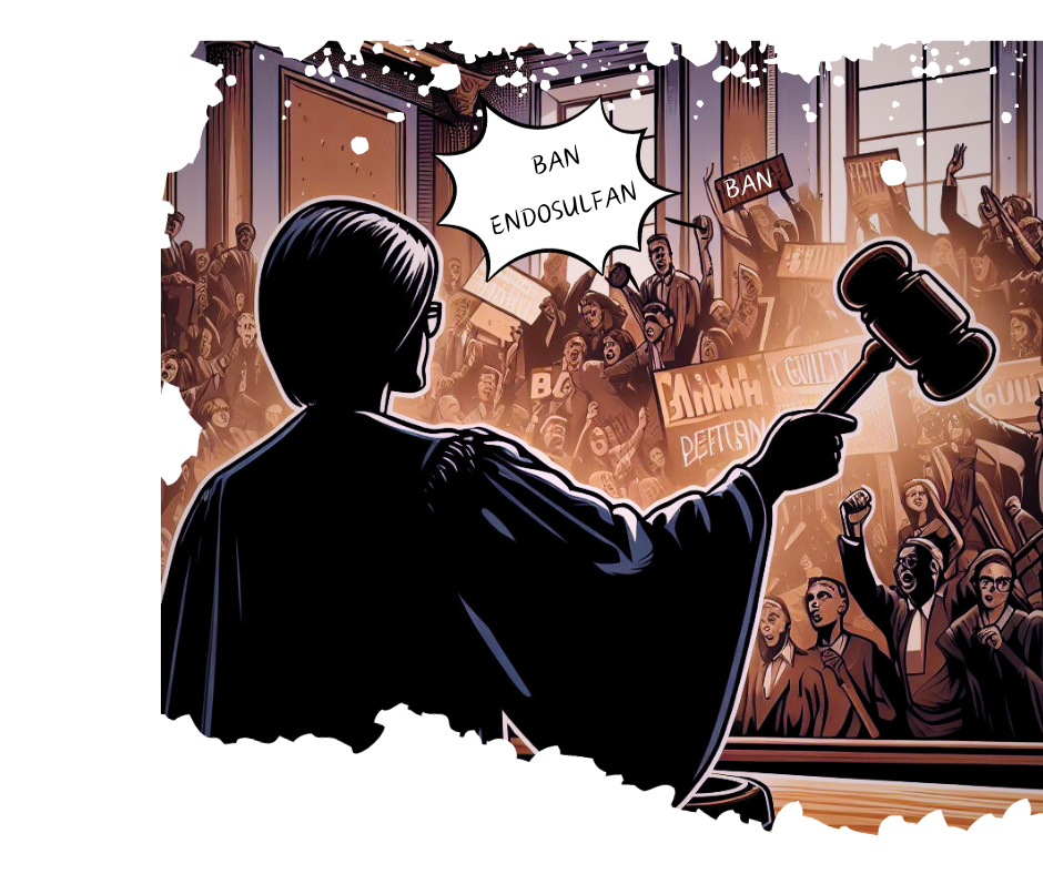 In August 2001, The Government of Kerala ordered that the insecticide Endosulfan should not be used in crops/plantations in Kerala until further orders. The High court of Kerala banned endosulfan in Kerala in 2003. The Central Government withheld the sale and use in Kerala in 2005. Several local protests broke out in Kasaragod district demanding ban of endosulfan. This paved the way for bringing the issue to the state and national level. Later it has even reached international forums such as the Persistent Organic Pollutants (POPs) Review Committee of Stockholm Convention, which resulted in a global ban of endosulfan in 2011. The same year Honorable Supreme Court of India ordered a national ban on this toxic chemical. Meanwhile, the national human rights commission has ordered to pay compensation to the individuals who were harmed by endosulfan poisoning.