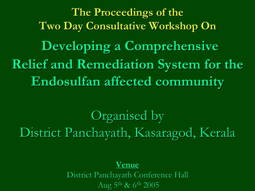 Developing a Comprehensive Relief and Remediation System for the Relief and Remediation System for the Endosulfan affected community (2005)