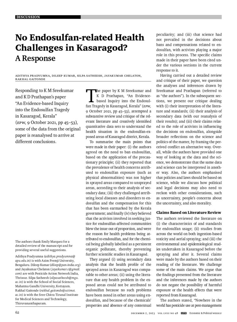 No Endosulfan-related Health Challenges in Kasaragod? (EPW, December 2023)